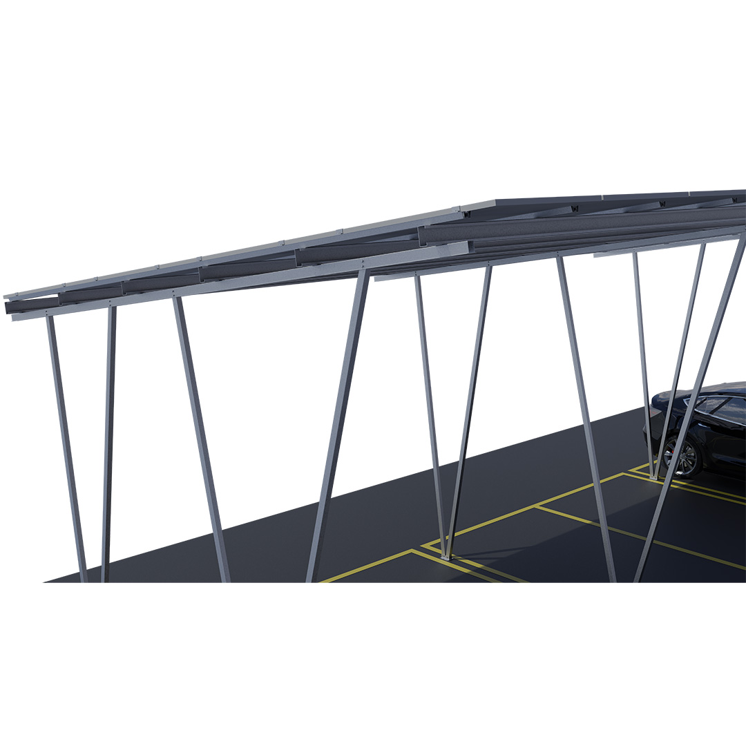 Сонячний W-подібний кронштейн для навісу для автомобіля - це кронштейн для навісу для автомобіля, призначений для встановлення сонячних фотоелектричних панелей, з 'W'-подібним структурним дизайном. Цей кронштейн може забезпечити міцнішу підтримку та більшу стабільність. Зазвичай використовується на великих паркінгах або комерційних площах. Він може не тільки блокувати сонце, але й ефективно використовувати простір на даху навісу для виробництва сонячної енергії.
